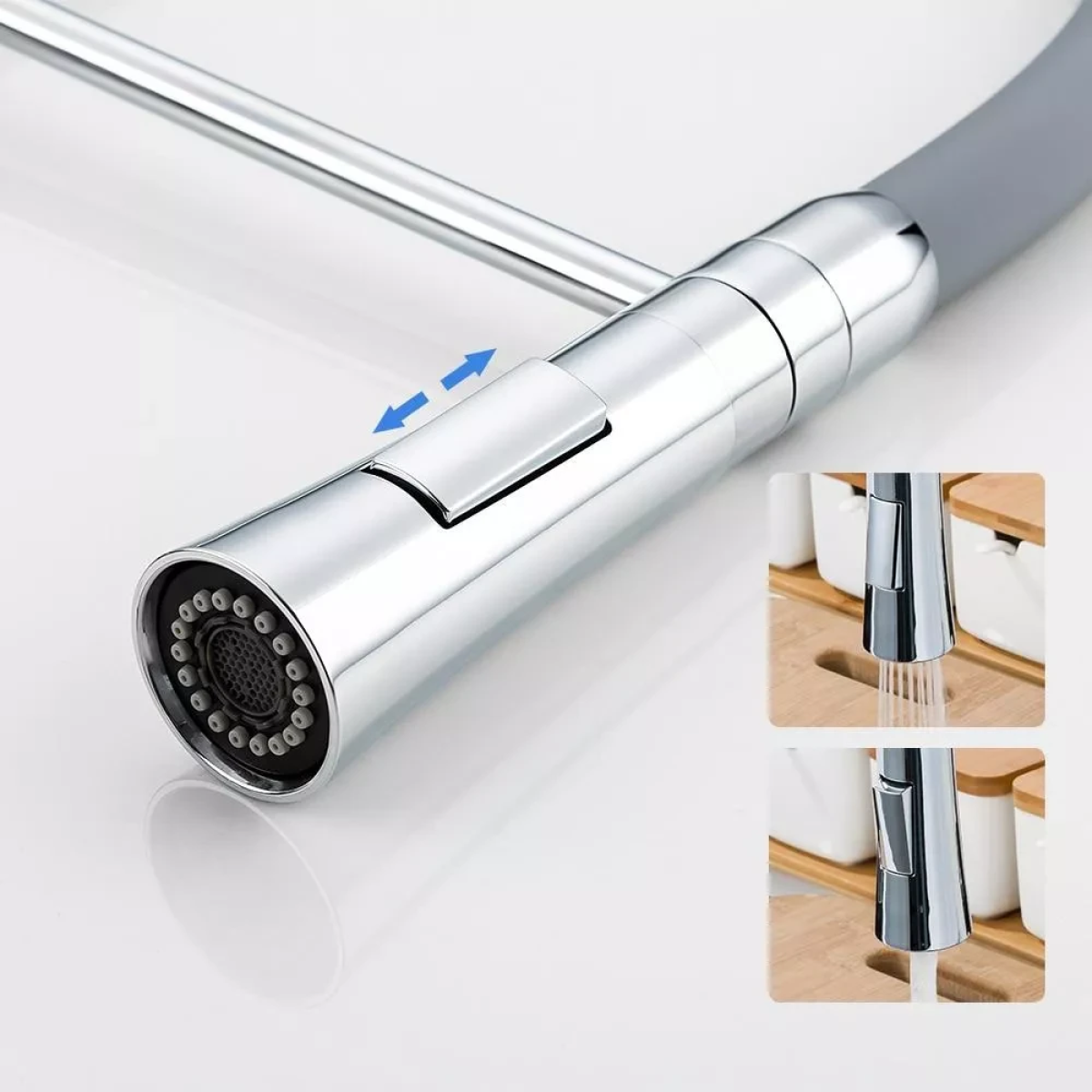 Змішувач для кухні Frap F4452-6 з гнучким виливом, 2 режими, сірий/хром
